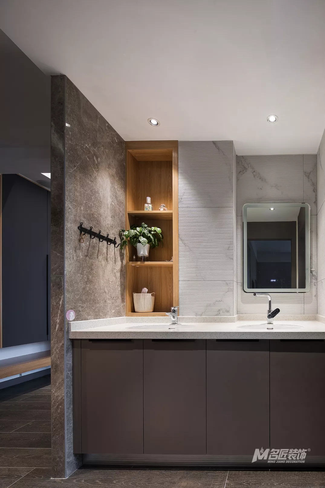 公卫延续了整体轻奢简约的效果,以大理石打底,彰显精致时尚的生活品味。